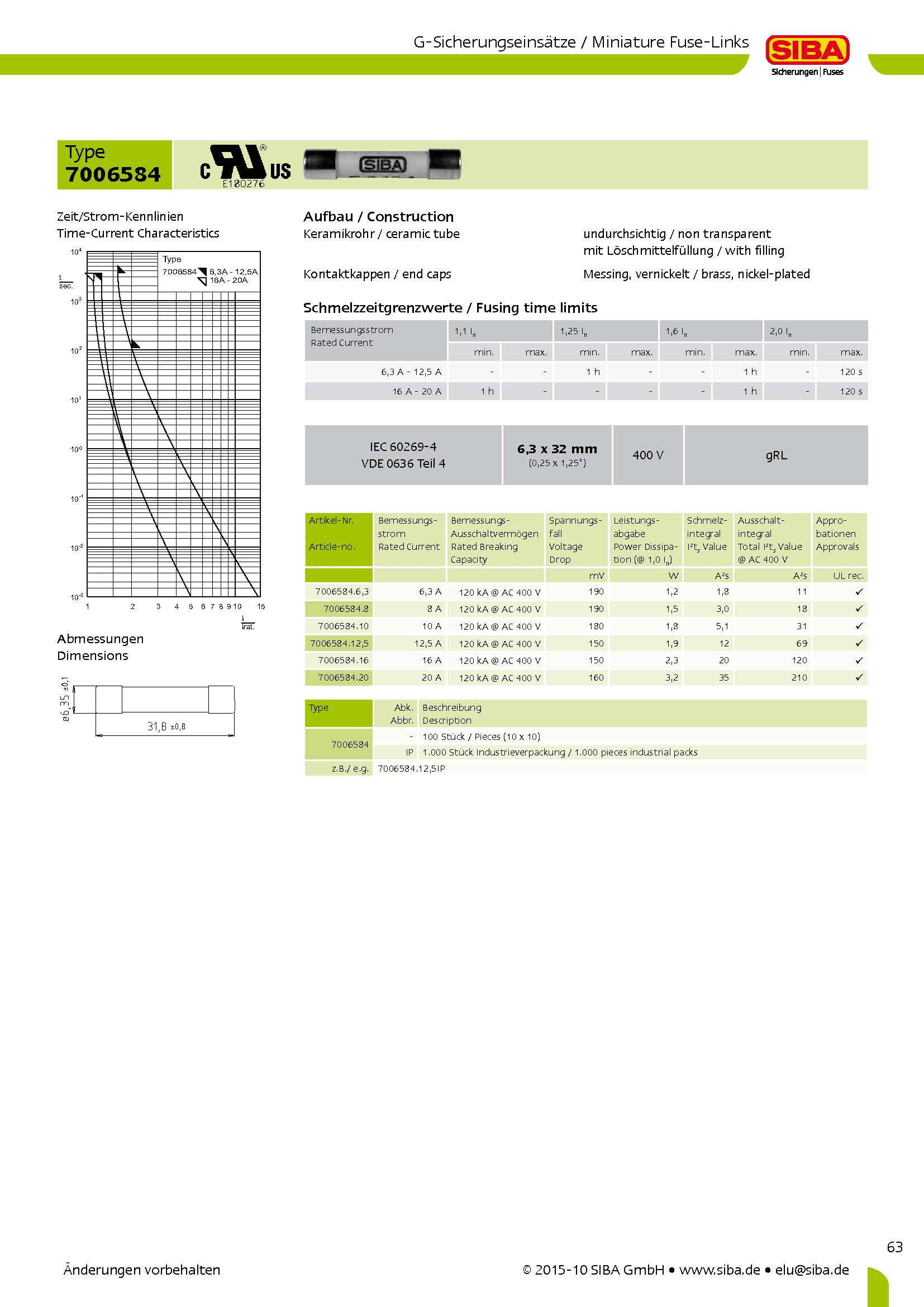 Siba熔斷器7006584